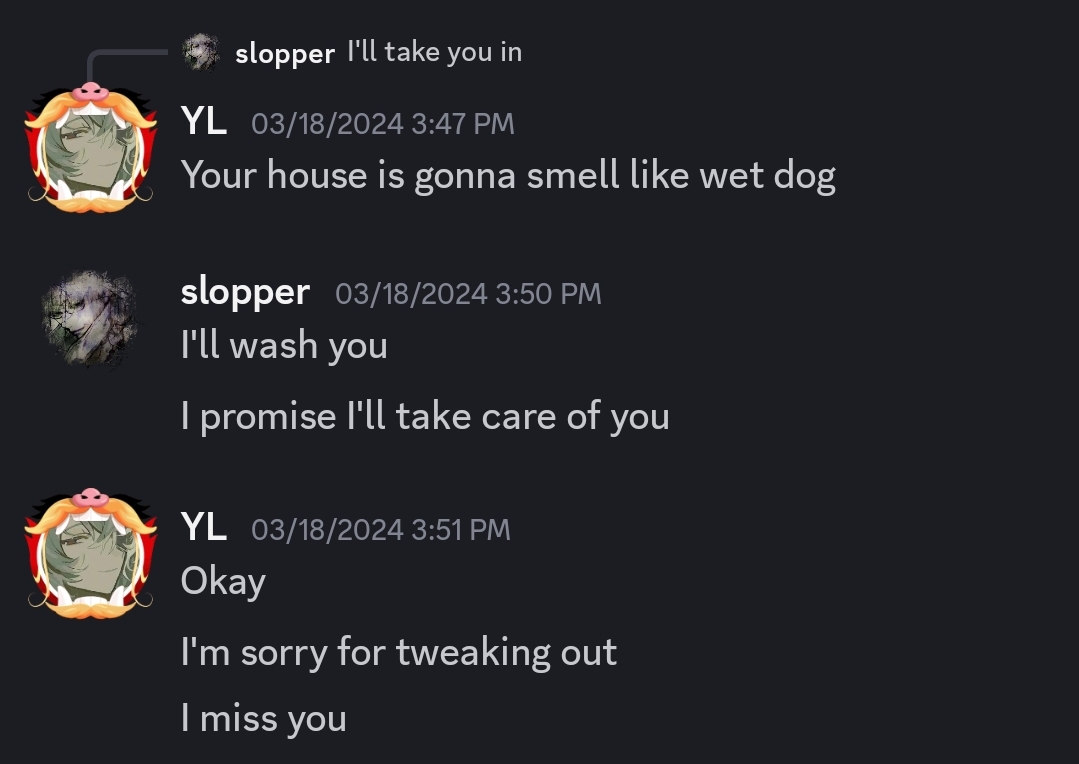 We always planned out our apartment to be a three bedroom apartment. But I really just wanted a two bedroom apartment. Nothing big just a small one with nice balcony view, we'll have a cat or two since you like them, and your bird would be living with us too. If I'm being honest I wished it was just us only in the those plans. No animals, no extra lover. But at that time I was really okay with being a dog you showered with spare affection. I was okay with you two being together if you'd just let me accompany you too. I was okay with those three bedroom apartment plans and couple of pets. I wouldn't complain if I had to be a dog and they got to be a human Just as long as you didn't leave me. And I didn't mind that you wanted to keep other animals around too Just remember I should be the most important one to you. If I can't be a human, I should at least be your most important stray. You two would love each other like no other and me I would sit and wait at that home for leftovers. Because dogs deserve affection too